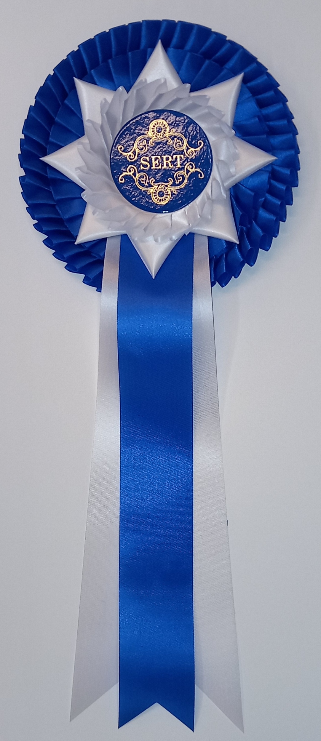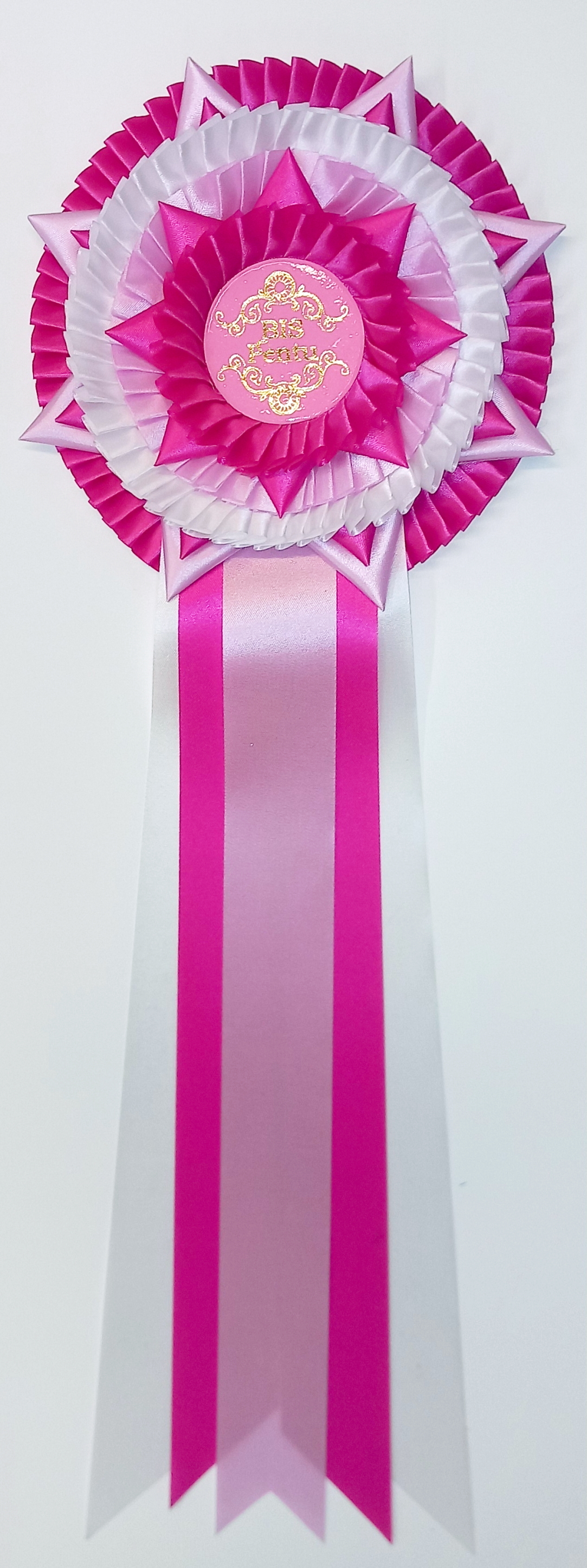 - Korkealaatuinen 4-väri tulostettu keskusnappi ruusukkeeseen lisähinnalla.
